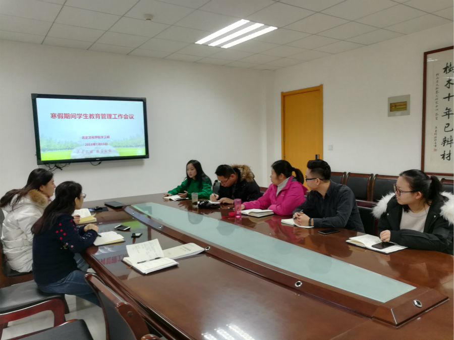 为贯彻落实公司寒假期间员工管理规定,确保全院师生度过一个安全、放心、愉快的假期。1月15日,公司学工组于文汇楼C段217召开寒假期间员工教育管理工作会议,会议由党委副书记程蕾主持,各年级专兼职辅导员参加了会议。会上,程蕾对各年级辅导员做了以下要求:
