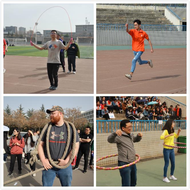 开幕式结束后,紧接着进行了师生足球联谊赛,在绿茵场上,老师和同学们追逐奔跑、热情洋溢,展现了太阳成集团tyc33455积极向上的风采。足球联谊赛结束后,各类比赛项目紧锣密鼓的进行。首先进行的是各项由师生共同参与的项目,如踢毽子、跳小绳、手榴弹掷准、跳大绳等,老师同学们们展现出与课堂上完全不同的风采,矫健的身姿与敏捷的动作赢得观众的阵阵掌声与加油呐喊。个人项目的比赛也尤为激烈200米短跑、100米短跑、仰卧起坐等项目,在同学们的欢呼声中,运动员们取得了优异的成绩。此外还有班级集体项目,袋鼠跳比赛、“和谐号动力火车”、拔河等比赛中,同学们为了集体荣誉,个个拼劲全身力气,挥洒着汗水,团结协作,密切配合,展现出良好的集体协作。整个赛场上回荡着掌声、欢呼声、呐喊声,洋溢着青春的生机与活力。