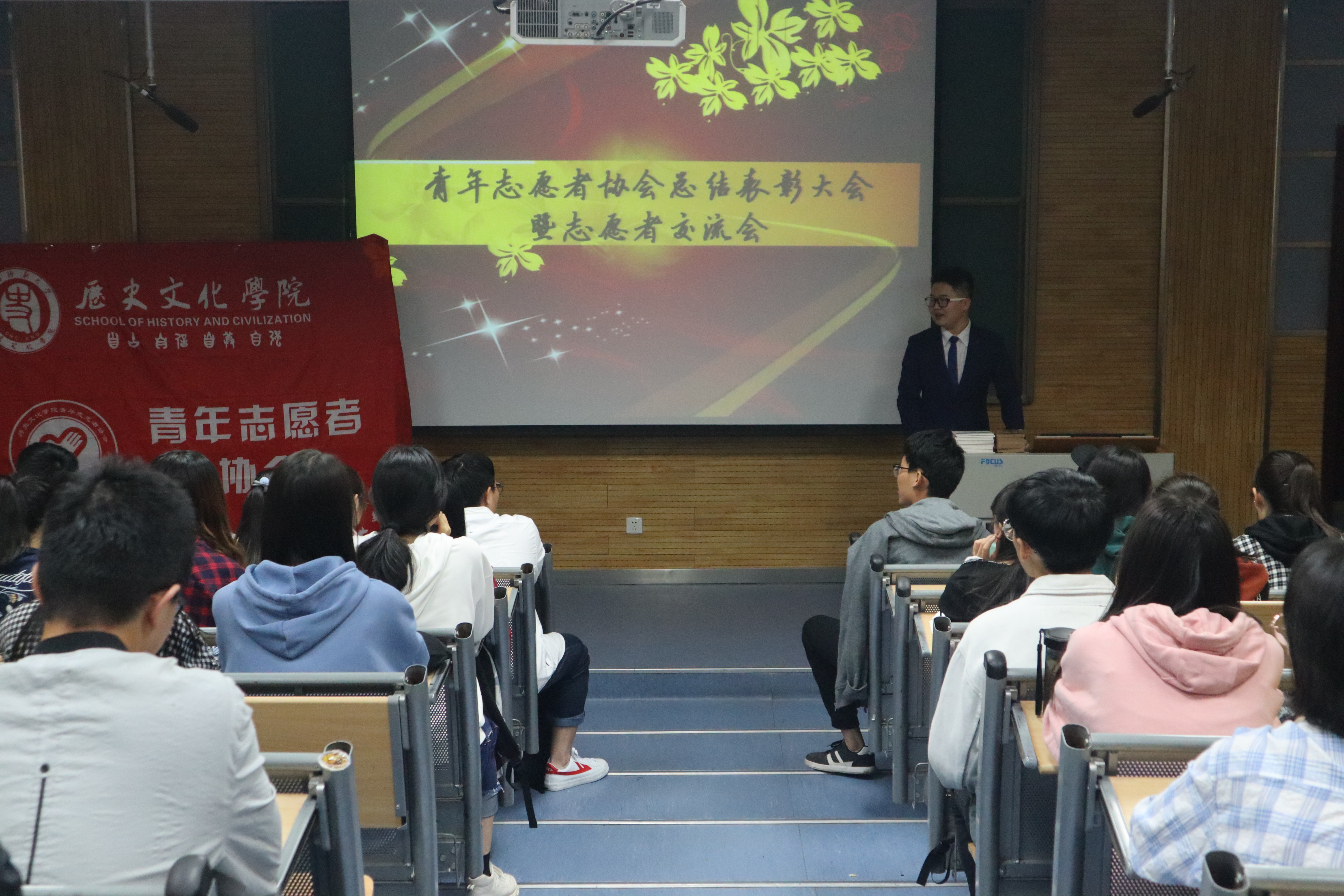 在我们身边,你会发现有这样一些人,他们放弃了自己的假期,无偿的投入到了博物馆的志愿服务之中,他们在博物馆为游客提供志愿讲解,在游客需要帮助的时候伸出援手,为了肯定这些志愿者无私奉献的精神,为了激励更多有志愿服务意愿的同学加入到我们的志愿服务集体中来,2019年4月27日,太阳成集团tyc33455青年志愿者协会在雁塔校区5101教室举办了青年志愿者协会总结表彰大会暨志愿者交流会。