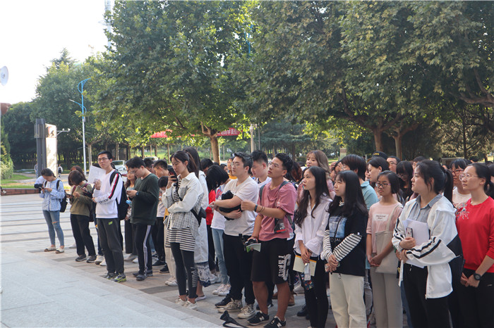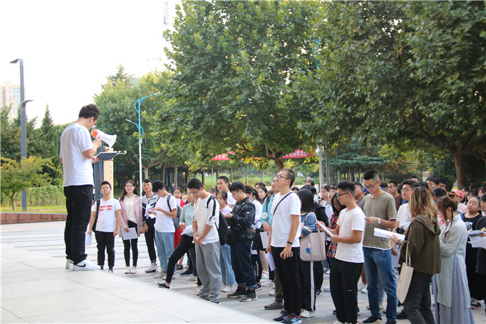 2017级本科生辅导员师瑞青在晚点名进行宣讲。他就社交网络平台安全使用问题向同学们一一讲解,提醒同学们注意网上交易陷阱,谨防陷入“校园贷”危机。
