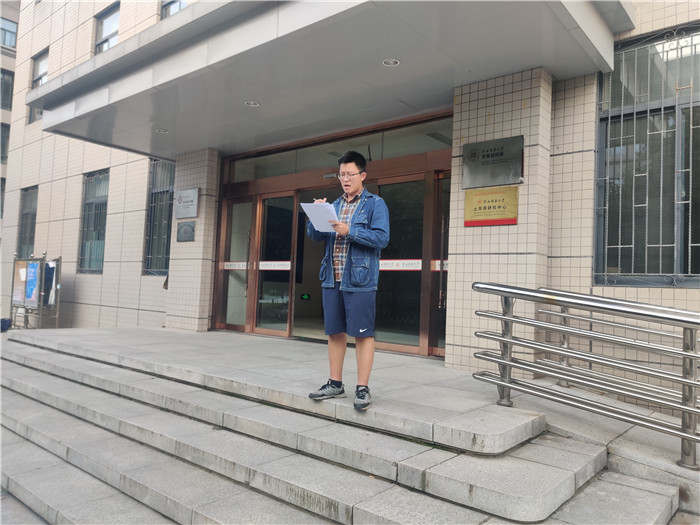 图为2016级员工代表张泰宣读国家网络安全相关知识