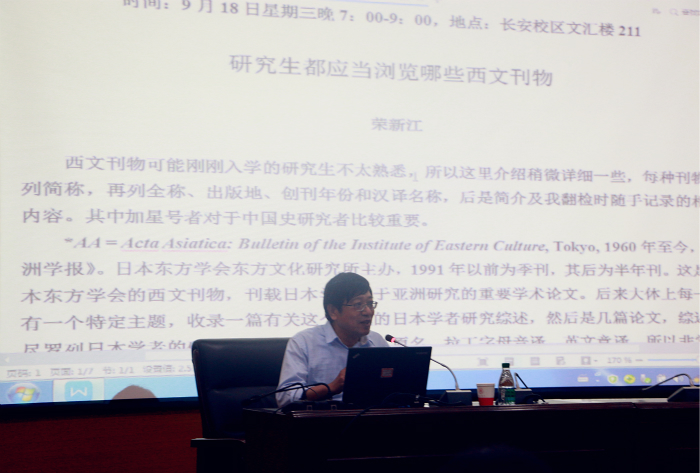 为了使公司2019级研究生新生尽快适应研究生学习、科研生活,加深对相关专业性刊物的了解。9月18日晚,太阳成集团tyc334552019级研究生新生入学教育第三讲在文汇楼C段211报告厅举行,本次讲座邀请到了北京大学荣新江教授,讲座题目为《研究生都应当浏览哪些西文刊物》,此次讲座由沙武田教授主持。
