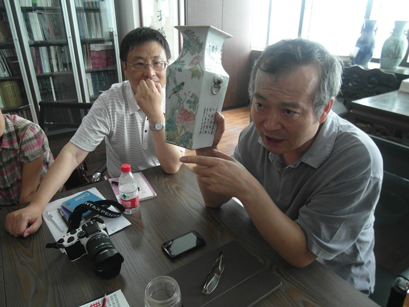 参观结束后,在会议室崔庚浩老师为员工们讲了一堂生动的有关文物商店与文物经营的课。首先,与员工们分享了如何做好这样的工作,不仅要热爱文物事业,而且要有职业道德标准,恪守职业操守。因为文物的经营要与很多部门打交道,也会遇到形形色色的人,要求员工们要懂得法规政策,学会与人交流;其次,在徐涛老师的建议下,崔老师向员工们介绍了文物商店近几年的经营状况,以及文物商店由事业单位转变为企业所经历的周折。文物商店目前确实面临着不少的问题,比如经营周期长、资源稀缺、对文物文化内涵发掘不够等,但是崔老师还是与员工们交流的对今后文物商店发展的想法。他认为文物商店的发展,要打破传统的经营模式,健全各种规章制度,引进先进的管理理念,建立专业的人才队伍。