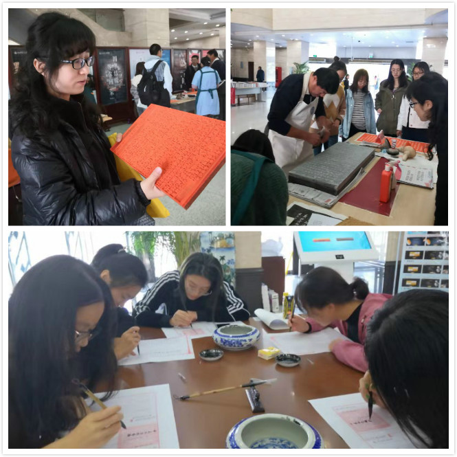 本次活动的内容,分别有古籍抄写、古籍修复、传拓技艺、雕版印刷刷印体验。