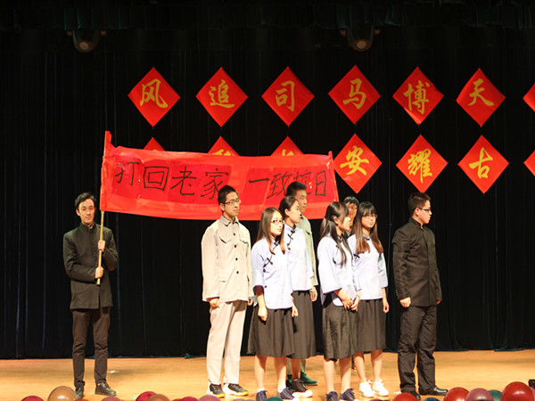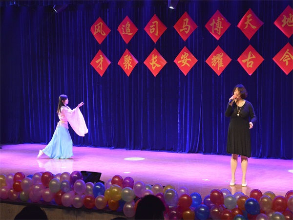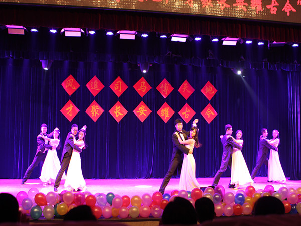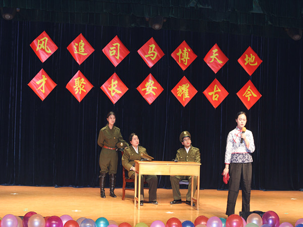 颁奖过后,公司几位青年教师带来了诗朗诵《青春无悔》,他们声情并茂的朗诵出了对教师职业的热爱。接着2015级学科教学的研究生们带来了历史剧《戏说科举》,讲述了一位考生不学无术却最终被录取的事迹,讽刺了当今社会上的不良之风。随后晚会进入第二个抽奖环节。抽奖环节过后,白建才老师为大家带来了歌曲《沁园春•雪》,让大家感受到白建才老师在教学、科研之外的独特魅力。随后2014级历创班的同学带来了历史剧《被撞击的现代人》,幽默诙谐的剧情再度将晚会的气氛推向一个新的高度。最后,汇演在2012级部分同学带来的舞蹈《爱的华尔兹》中圆满落下帷幕。