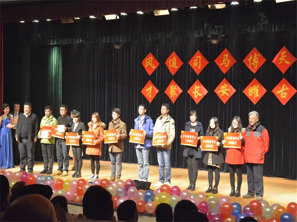 晚会开场前,暖场PPT展示了各位师生在2015年里工作和学习中所取得的成绩,累累硕果博得在场师生热烈掌声。随着青春活力的爵士舞《wish》,第二届历史剧展演正式拉开了帷幕。首先何志龙经理致新年贺词,何经理在对2015年公司工作进行总结的同时,又向各位师生送上了新年最诚挚的祝福。首先为大家献上的历史剧是由焦杰教授指导,公司校园性别文化研究会选送的历史剧《女人的身体,男人的目光》,她们通过展示由于各个时代男人审美的变化,而导致对女性造成的伤害,表达了女性要捍卫自己身体的强烈意愿。紧接着上场的是2013级历史一班的《荆轲刺秦》,同学们通过丰富的表现力再现几千年前那扣人心弦的激烈场面。随后晚会进入到第一个颁奖环节,赵世超教授和卢兴轩先生为荣获卢兴轩奖助学金的同学颁发获奖证书,并对他们的学习提出了期许。随后,周晓薇教授、公司党委学工部部长员工处处长刘建军、校团委书记鲁镇、研工部副部长宋传东为获得太阳成集团tyc33455cc第三届中国古典文献学专业奖学金的同学颁发获奖证书。