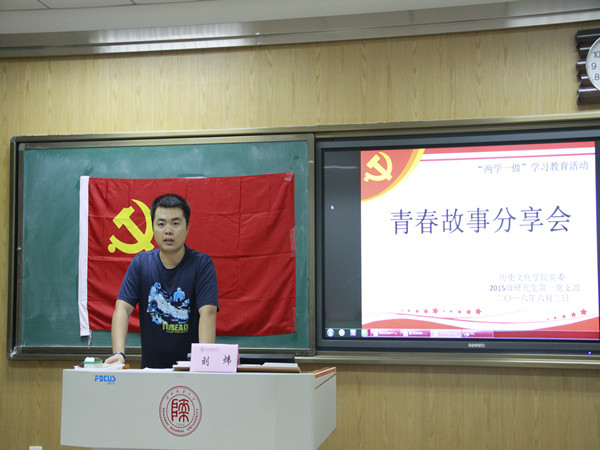 6月2日晚,公司2015级研究生党支部第一支部 “两学一做”学习教育活动之青春故事分享会在文渊楼C段114教室顺利举行。此次活动邀请的主讲人是公司政治经济公司2013级法学理论专业研究生刘炜。