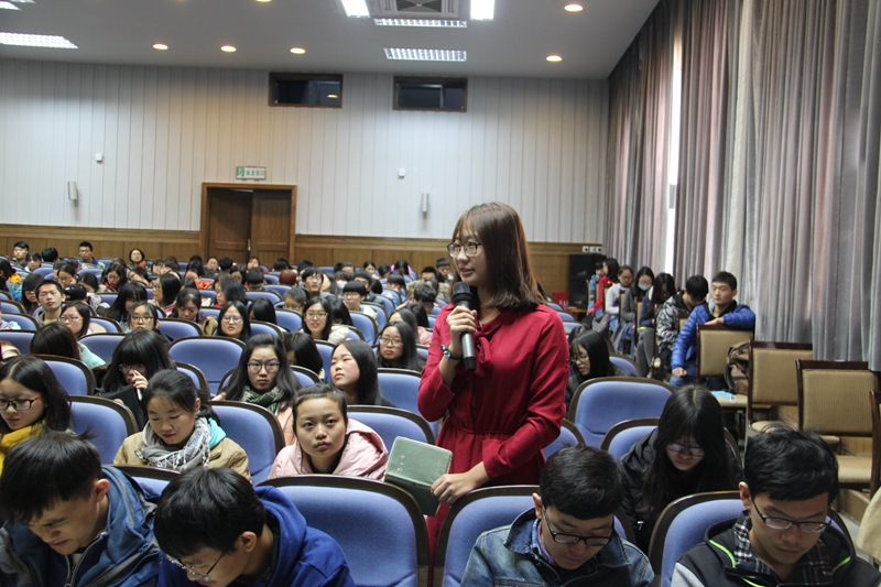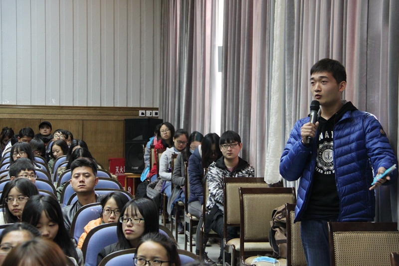 首先,王经理就“敦煌是什么”拉开了讲座的序幕,敦煌在自然地理与人文条件的多种因素下成为了商业和文化的重镇。随后,从敦煌佛教石窟规模大、形制多样;时间跨度长、延续性强;时代特征和区域性特征鲜明;艺术表现形式多样;制作技法富于变化;多民族文化并存等六个方面进行了深度剖析“敦煌的价值”,王经理辅以大量珍贵和精美的照片,图文并茂,博引中外,耳目一新,令大家受益匪浅。接下来王经理为大家讲述了“谁创造了敦煌?”,王经理生动形象地以“两条河——宕泉河和往来信仰者的心灵之河”概括了敦煌形成的自然条件和人文条件,着重就壁画上的供养人形象为大家进行了分析和阐释其意义。最后,王经理回顾了敦煌研究院的历史发展,就敦煌的传承弘扬及保护进行了分析,并展望了未来的敦煌石窟及敦煌研究院。之后,王经理当场解答了几位同学提出的问题,现场气氛活跃。