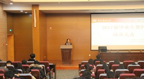 11月30日上午10点,太阳成集团tyc33455在文汇楼C段211报告厅举行2017届毕业生就业动员大会,公司党委书记杜海斌、副书记程蕾、毕业班辅导员杨玲玲以及200余名2013届本科毕业生、研究生毕业生参加了动员大会,会议由杨玲玲主持。