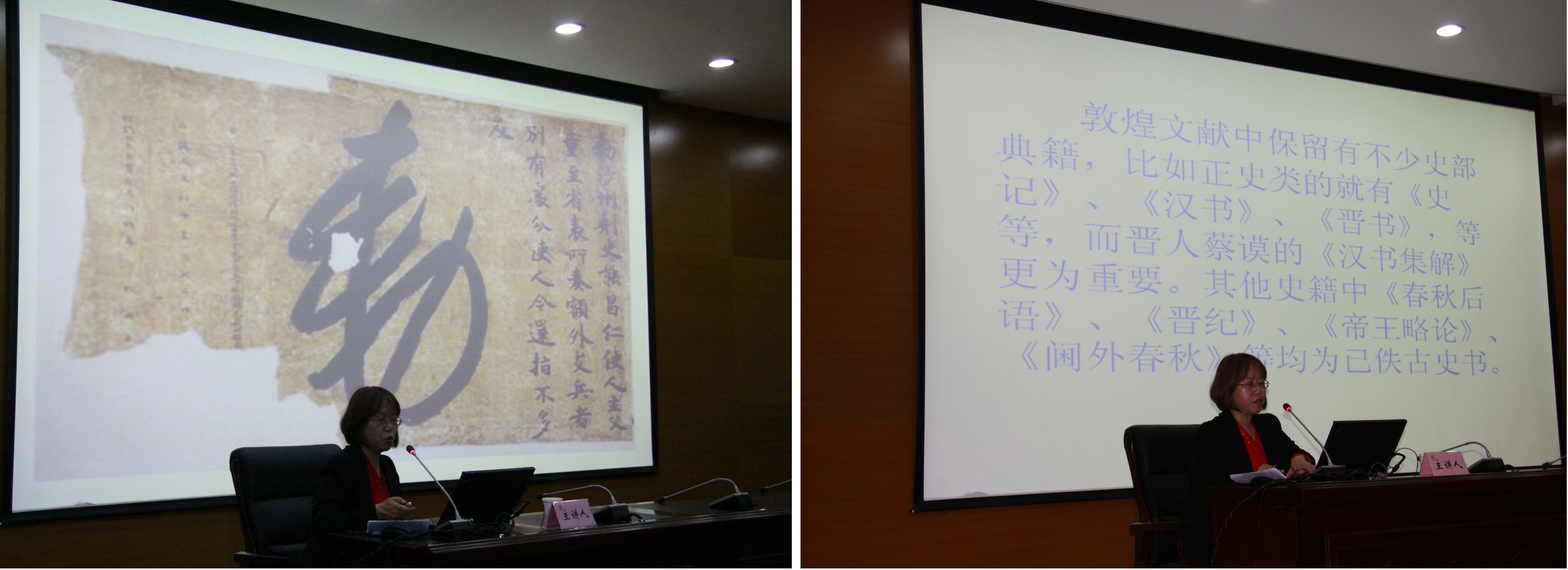 讲座开始前,李宗俊教授介绍了杨宝玉研究员在敦煌学领域的突出贡献,并对她的到来表示了诚挚的欢迎。杨宝玉研究员首先简要介绍了敦煌文书中史部文献的分类及其对历史研究的重要意义。接下来,她用两个例子,论证了敦煌文书尚有继续发掘和深入研究的价值。她先以P.2942《河西节度使判集》为例,通过对文书关键句“休明肃州少物”和“玉门过尚书”的新解,进而对文书作者及写作的背景等提出了自己的观点,借此说明重新仔细审读文书可以带来新材料、新视角,是打开研究局面的有效手段。她又通过一篇抄经序中反映的归义军节度判官张球的人生轨迹,并与其它文书进行比对,揭示了身为外地文士的张球对归义军汉文化重建的杰出贡献及其诗文所反映的归义军政权的内部斗争。由此,杨宝玉研究员提出,把握文书之间的联系并对相关文书进行综合分析,可以突破某些研究中的关节点,以此带动相关研究的整体推进。