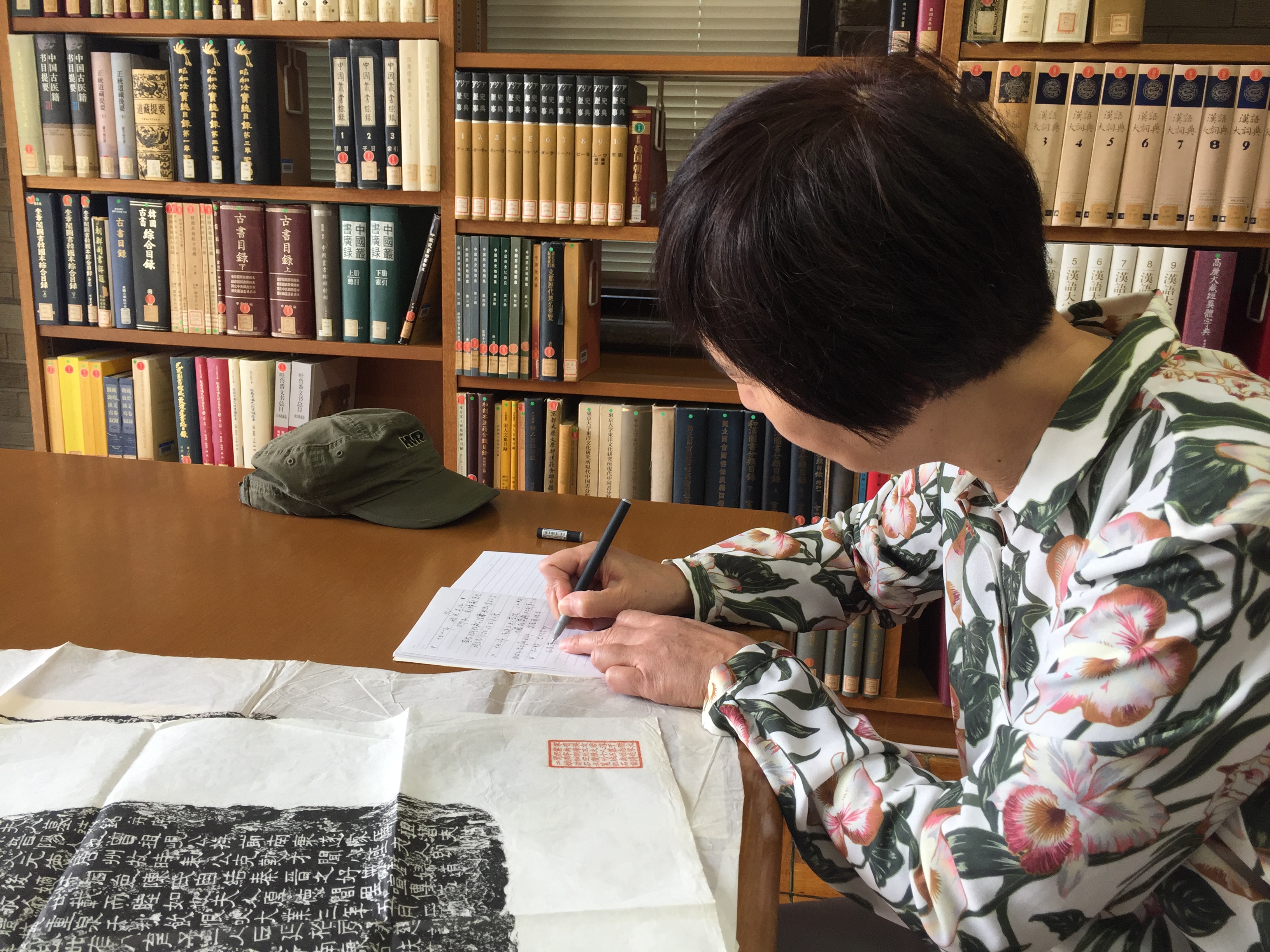 因本次学术访问受邀单位是日本东洋文库,周老师首先查阅和调研东洋文库的隋代墓志及石刻拓本资料。东洋文库是日本最大的收藏东方学资料的图书馆,也是日本三大汉学研究重镇之一。是一个专门把中国与中国文化作为主要研究对象的图书馆兼研究所,所藏中国珍籍、石刻拓本,许多为国宝或重点保护文物。1961年该文库应联合国教科文组织的要求附设了东亚文化研究中心。这是它与日本其它文库最大的不同之点,也是以后东洋文库在日本学术界享有盛名的一个重要的原因。东洋文库为周晓薇教授安置了固定的办公地点并办理了书库入场许可证,为她在这里借阅石刻拓本和古籍文献并进行研究,提供了很大的方便。