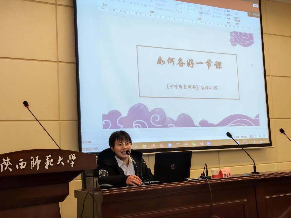 2017级历史学二班的郭仁卿就如何备课及其注意事项为大家进行了专题讲解。他希望大家注意通过课标来把握课程的内容,做到有的放矢,重点突出。他还以具体实例说明了使用教材的方法,如分析单元与课程导言,注意课程子目间的逻辑关系,利用课本已经提供的史料等。随后,郭仁卿为大家强调了利用教参时的注意事项。