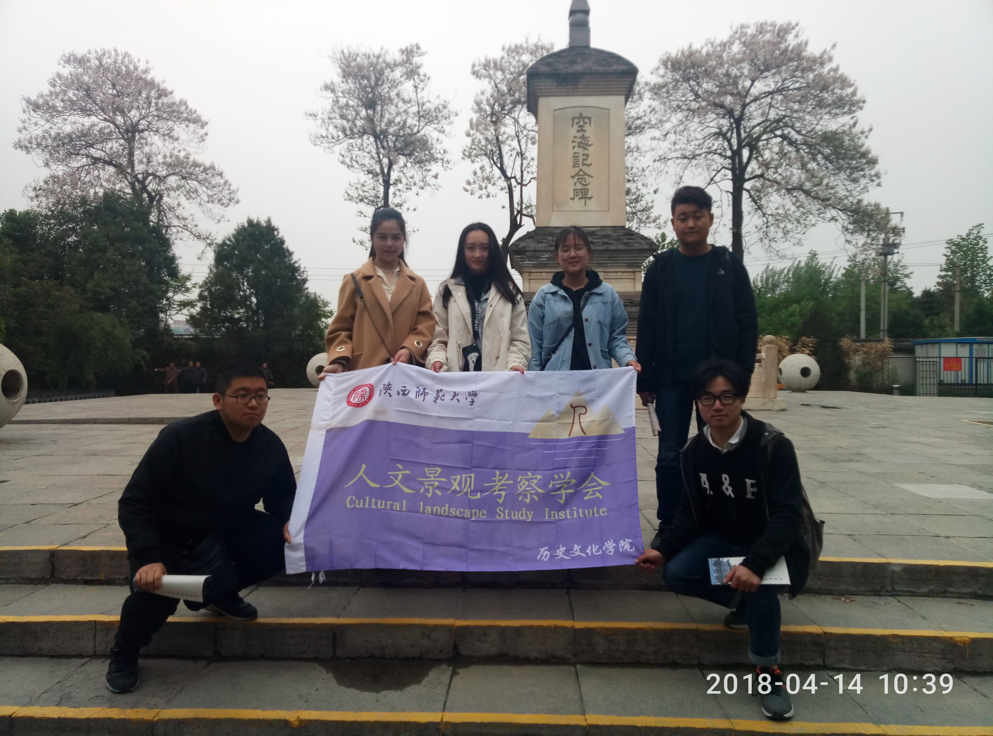 2018年4月14日上午8:50,由7人组成的考察团在社团主席李升韬的带领下,分别从新校区乘坐公交前往考察交流目的地——青龙寺。经过1个小时的车程,所有成员安全到达。下车清点完人数后,步行至青龙寺门口,并在青龙寺山门、青龙寺博物馆与空海纪念碑下合影留念。