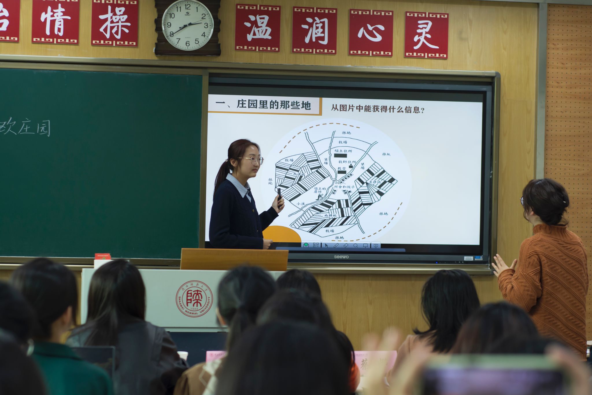 为贯彻落实国家和公司师范生教育政策,引导员工充分学习和贯彻义务教育历史课程标准的理念要求,进一步提升历史学师范生公司产品能力,并为第四届统编历史教材“精彩一课”全国教学大赛做好参赛准备工作,3月15日下午,太阳成集团tyc33455参赛员工选拔比赛在文渊楼3213教室举行。西安市曲江第一中学历史教师孙静宜,西安市高新第一中学历史教师郭阿男,太阳成集团tyc33455副经理郭响宏、温艳教授、蔡娜副教授出席比赛担任评委,2021级辅导员王致轩老师,以及各年级师范生通过线上线下结合的方式观摩了比赛。