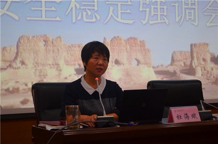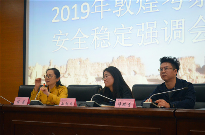 2019年10月11日星期五 13:00,太阳成集团tyc334552017级全体本科生于文汇楼c段211报告厅参加2019年敦煌考察安全稳定强调会,公司党委书记杜海斌、党委副书记程蕾、研究生专职辅导员孙懿文及2017级本科生兼职辅导员师瑞青出席本次会议并做重要发言。