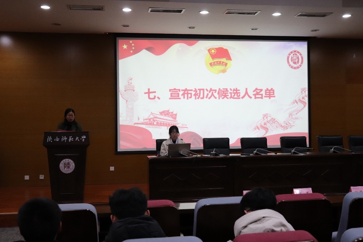 经过紧张有序的计票工作,本次预选举结果顺利统计出炉,并由团委书记洪海安宣布初次候选人名单,宣读完毕后,全场同学以热烈的掌声表示对候选人的祝贺与期待。