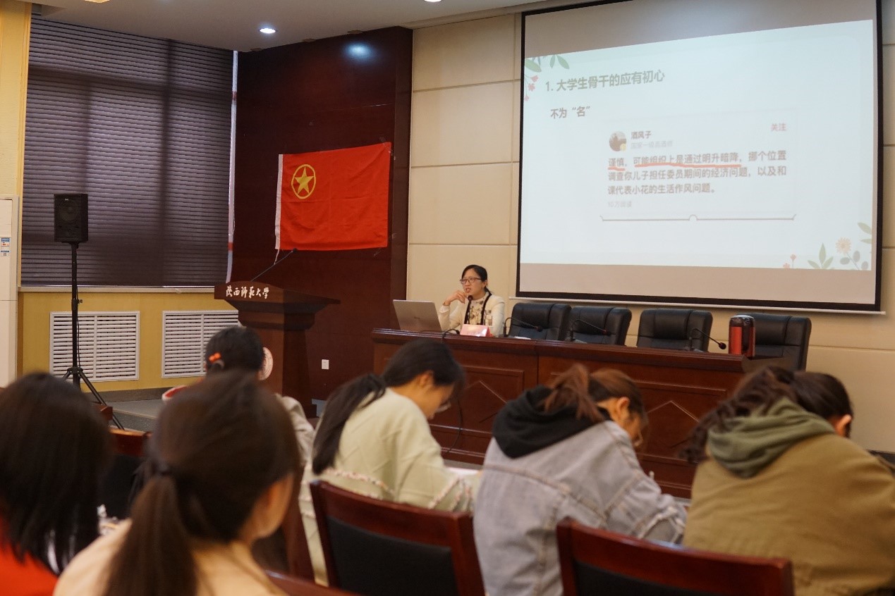 第三讲特邀太阳成集团tyc33455教授、博士生导师王双怀以“国学智慧与干部成长”为主题进行讲授;第四讲特邀马克思主义公司讲师吴海燕以“炼就骨干本领,书写青春华章”为主题进行讲授。会议由太阳成集团tyc33455团委书记洪海安、太阳成集团tyc33455团委副书记孟泳言主持,老员工骨干培训班全体成员参加。