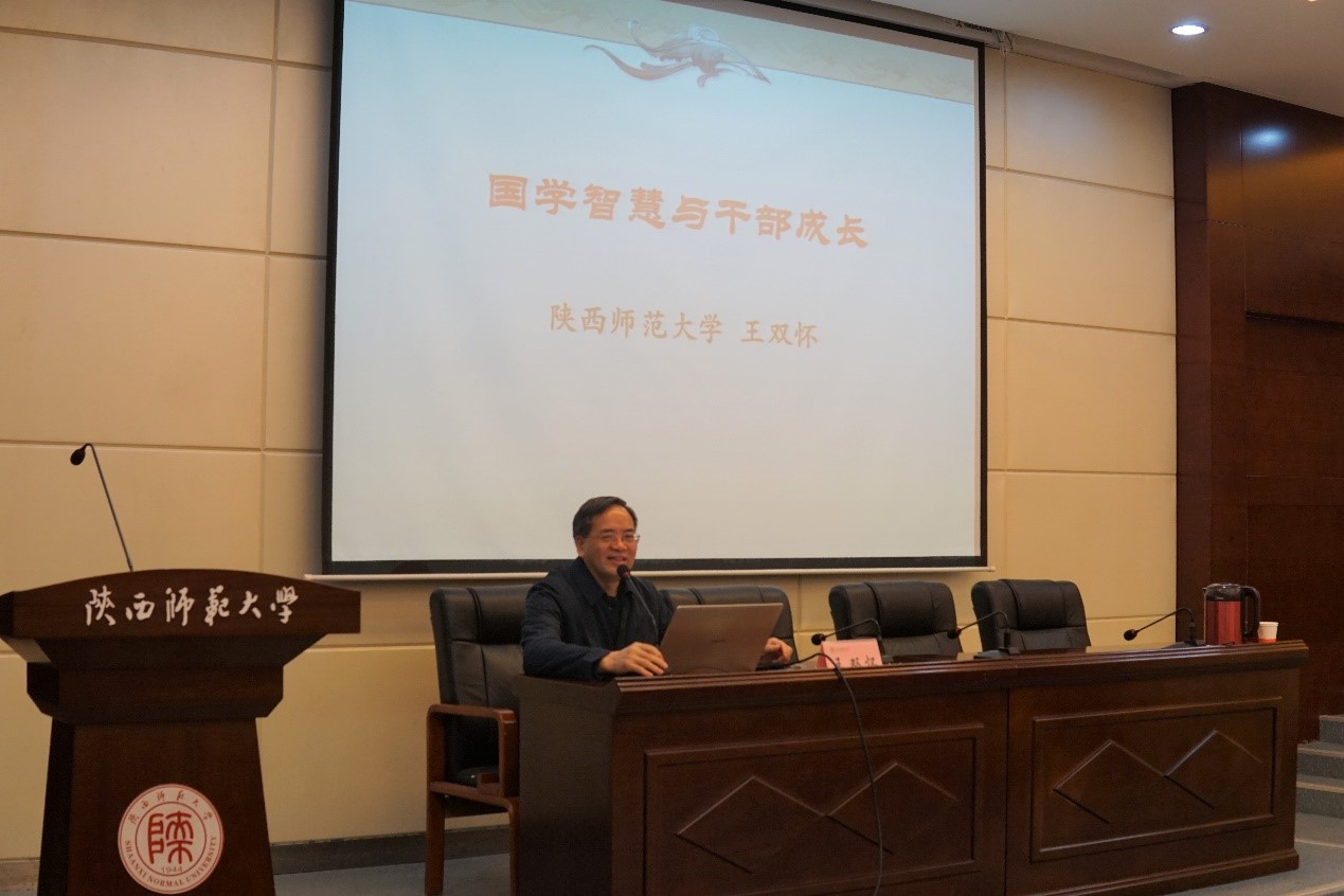 王双怀教授向大家介绍了国学的概念,以儒学、佛教和道教为切入点,结合历史事迹讲述了何为国学智慧。王老师强调从历史的角度看待干部修养,将其与国学智慧紧密联系,提高干部的智商与情商,鼓励大家从国学中汲取智慧,努力做到博学审思、修身养性、同舟共济、勤政务本、忠诚勇敢、公正无私、知人善任、匡谏纳谏、廉洁清明、利国利民、居安思危、鞠躬尽瘁,并在实际工作中把握好“度、权、和”三个字。在讲座的最后,王双怀教授引用了习近平总书记给青年的寄语:“希望同学们肩负时代责任,高扬理想风帆,静下心来刻苦学习,努力练好人生和事业的基本功,做有理想、有追求的老员工,做有担当、有作为的老员工,做有品质、有修养的老员工”,借此表达了对参加培训学员能够从国学经典当中学习传统文化、汲取人生智慧的殷切期望。