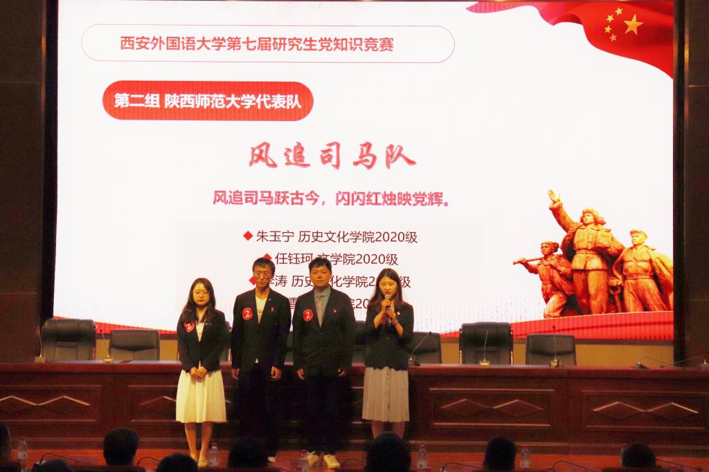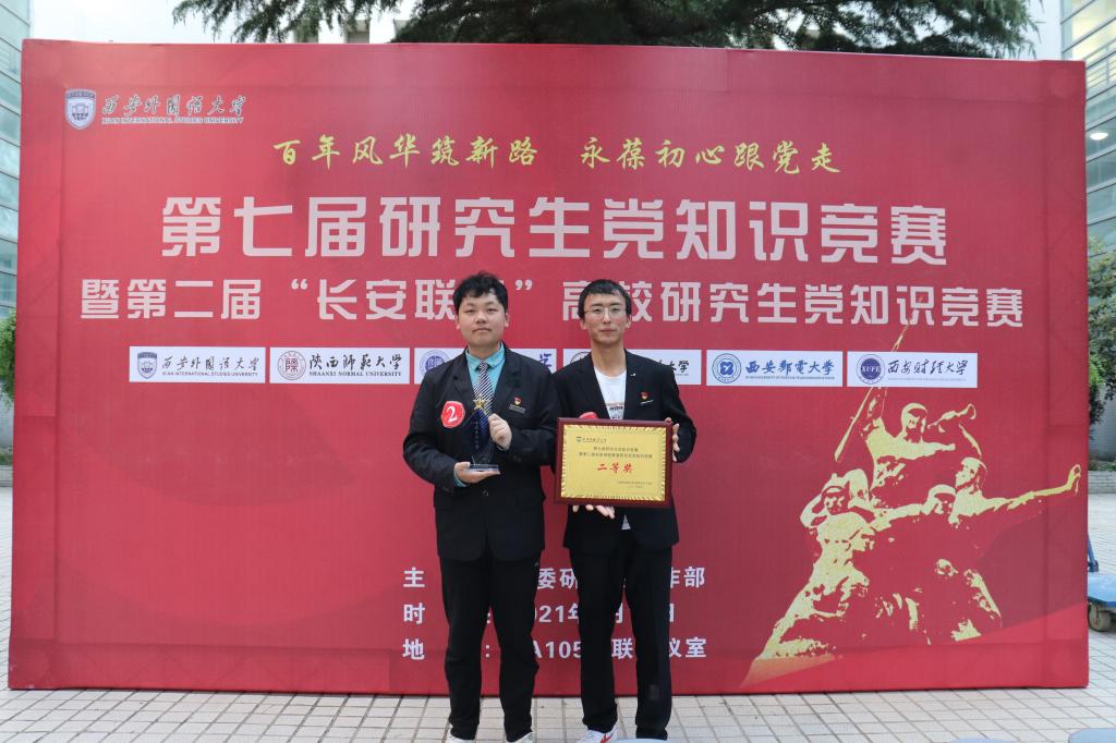 5月12日下午,“百年风华筑新路 永葆初心跟党走”第七届研究生党知识竞赛暨第二届“长安联盟”高校研究生党知识竞赛在西安外国语大学长安校区SA105模联会议室举行。公司2020级中国近现代史硕士研究生朱玉宁和李涛代表公司参赛。经过激烈角逐,公司风追司马队获得党史知识竞赛第二名的好成绩!