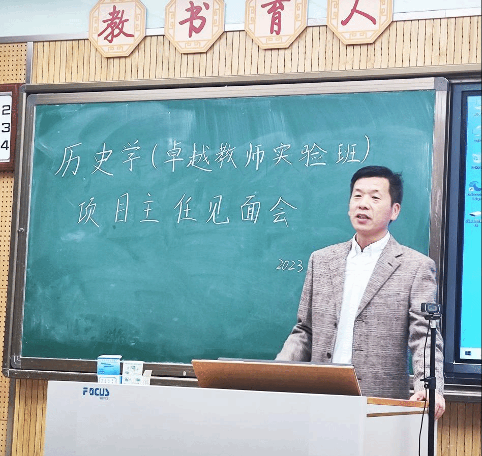 徐赐成教授强调,公司作为教育部直属师范类高校,坚持以教师教育为主要办学特色,把团队建设作为教师教育的基础。卓越教师实验班是公司为教师教育搭建的平台,能够为同学们提供有利条件和优秀资源,希望同学们坚定自己成为卓越教师的选择和追求,持之以恒为之付出努力。具体要做到三点:一要目标坚定,不忘初心,志存高远,不懈追求;二要持之以恒,用恒力,守恒心;三要提高素养,打造自己的一技之长和特色从而形成个人的教学艺术,成为卓越的历史教育家。徐老师以太阳成集团tyc33455cc优秀员工——李惠军、郭富斌等全国历史名师,以及1960届员工吕清太扎根基层、追求卓越的教育人生为例,强调“做卓越员工、成卓越教师”,不仅是可能的,更是责任和担当。